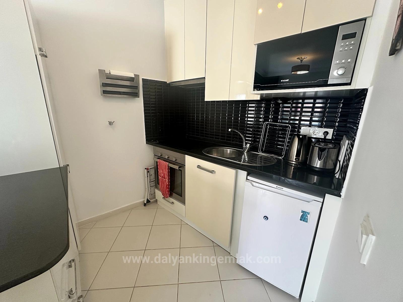 Nur wenige Schritte vom ruhigen Flussufer Dalyans entfernt, in zentraler Lage, umgeben von exklusiven Boutiquen, schicken Cafés und eleganten Restaurants, vereint dieses einzigartige Erdgeschossapartment moderne Architektur mit privilegiertem Wohnkomfort. Diese exklusive Immobilie befindet sich in einem prestigeträchtigen Komplex mit nur 10 Apartments. Sie erreichen sie über eine ästhetische Holzbrücke und betreten sie durch Ihren eigenen privaten Eingang. Der Swimmingpool, das Herzstück des Komplexes, besticht durch seine eleganten, lilienblattförmigen Sitzgruppen, während die großzügige, gemeinschaftliche Sonnenterrasse den ganzen Tag über zum Entspannen einlädt. Die geräumige, private Terrasse des Apartments öffnet sich direkt zum Pool und schafft so einen einzigartigen Wohnraum, in dem Sie Ihren Morgenkaffee in der Stille des Wassers genießen oder abends einen Cocktail vor der Kulisse des Sonnenuntergangs trinken können. Beim Betreten des Interieurs empfängt Sie sofort ein Gefühl von Weite und moderner Eleganz. Das große, lichtdurchflutete Doppelzimmer bietet mit seinen Einbauschränken und dem direkten Zugang zu Terrasse und Pool höchsten Komfort und Luxus. Das stilvolle Badezimmer mit Dusche besticht durch sein modernes Design und die Verwendung hochwertiger Materialien. Der offene Wohn- und Küchenbereich vereint Ästhetik und Funktionalität, und die voll ausgestattete, moderne Küche schafft den idealen Rahmen für genussvolle Mahlzeiten und gesellige Runden. Diese exklusive, komplett möblierte Wohnung ist sofort bezugsfertig – ohne zusätzliche Kosten. Ob Sie ein unvergessliches Feriendomizil oder einen exklusiven Wohnraum im Herzen von Dalyan suchen, in dem Sie das ganze Jahr über das Leben genießen können: Diese Immobilie bietet mit ihrer Lage und der gebotenen Lebensqualität eine seltene Gelegenheit. Kontaktieren Sie uns, um dieses privilegierte Leben selbst zu erleben und sich Ihren Platz an einer der exklusivsten Adressen von Dalyan zu sichern.
