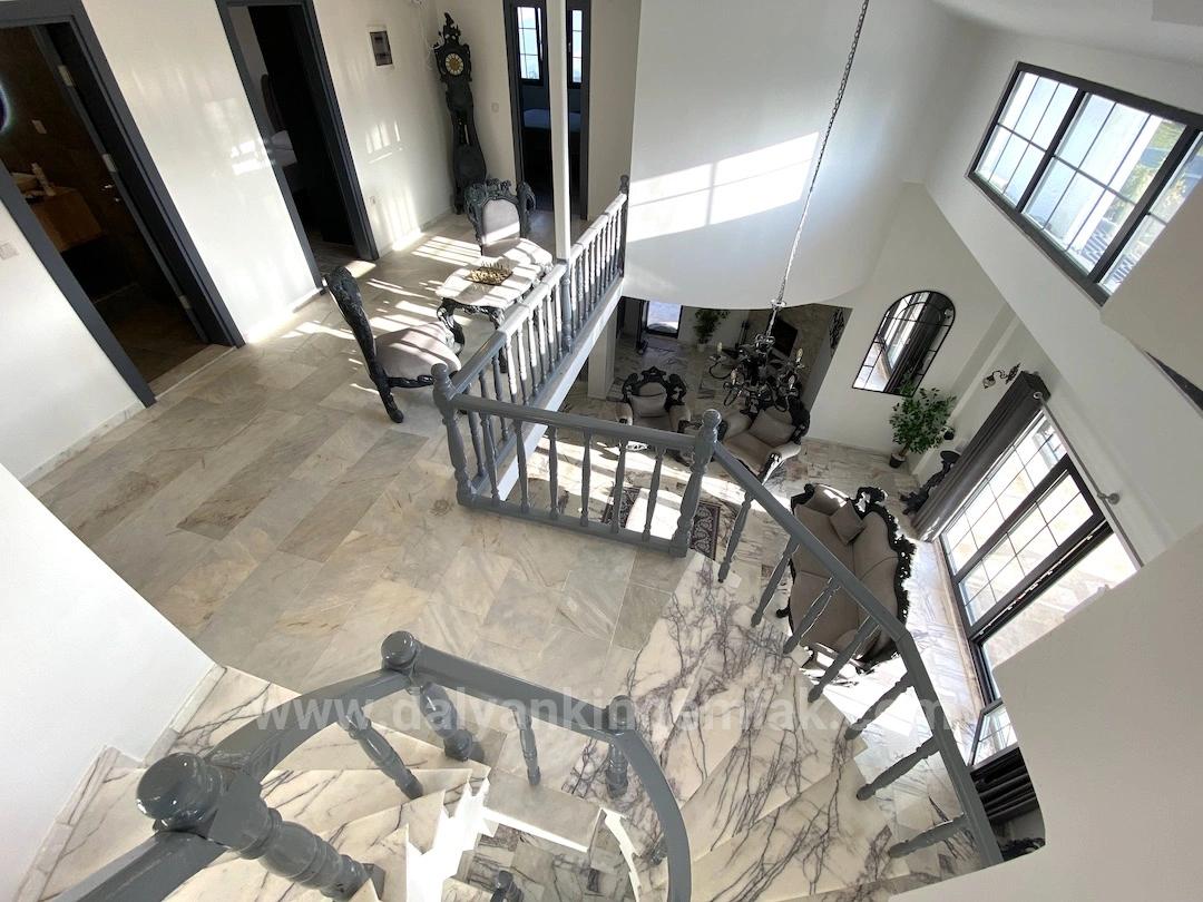 Located right on the coast of Dalyan, in the peaceful atmosphere of Okçular Village, Villa Splendid is more than just a house; with its architecture, scale, and the variety of lifestyles it offers, it is truly a fairytale land. This highly unique property, unparalleled in the region, creates a truly rare and exciting opportunity by offering two separate living spaces together, rather than settling for a single structure. The main building, often referred to as a "fairytale house," inspires admiration at first glance with its striking and impressive architecture; It is almost impossible to find a house of this scale and character anywhere else around Dalyan. Located in a quiet spot away from the main Ring Road, the property offers easy access to both Dalyan and Ortaca. Surrounded by mountain views, this exclusive location offers the privilege of being away from the crowds but close to the center. Dalyan center can be reached in about thirty minutes on foot or just a short five-minute drive. The nearby market for daily necessities is only a few minutes away, while Günlük Restaurant, a popular spot in the area, located directly across the road, brings the social life right to your doorstep. Both villas have recently been completely renovated to the highest standards and are situated within a 1,150 m² walled, highly private and secure garden. The garden features various fruit trees, an elegant fountain, and extensive lawns. In the center of the garden is an impressive 50 m² swimming pool, an outdoor bar, a playground, and a specially built barbecue, providing the perfect setting for entertaining guests and enjoying long summer evenings. At the end of a long, private entrance hall, accessed via a remote-controlled electronic gate, is the garage and workshop area, while the entire property is protected by security cameras. The interiors of the main villa are just as impressive as the exteriors. The spacious and airy living room on the ground floor is striking with its high ceilings and impressive volume. The modern kitchen, located next to the living room, and the adjacent dining room offer an ideal flow for both daily life and gatherings. The unique and opulent sofa sets complement the grandeur of the living room, adding timeless elegance to the space. On the ground floor, there is also a double bedroom with an en-suite bathroom and independent entrance, a spacious hallway, and a guest WC. Up the winding staircase, you are greeted by a mezzanine overlooking the living room. This floor contains a total of four bedrooms, one of which is currently used as the upper living room, and a master bathroom with both a shower and a bathtub. All the rooms are spacious double rooms, three of which open onto a balcony. The very large master bedroom offers a privileged living space with its own bathroom. The attic, reached by going up one more floor, is currently used as a library and study area, and its size allows it to easily be converted into a sixth bedroom. The main villa has a capacity to comfortably accommodate twelve people. Located within the garden of the main villa and included in the sale, the second structure is a detached bungalow reflecting traditional Turkish architecture. This second house is completed with two spacious double bedrooms, each with an en-suite bathroom, a spacious open-plan living-kitchen-dining area, a separate laundry/utility room, a large veranda, and a roof terrace. With its own garden and independent entrance, this structure offers excellent flexibility as a guest house, additional living space, or a separate rental property. data-end="4205">Villa Splendid, with its fairytale architecture, two separate living areas, spacious gardens, and advantageous location, offers a unique living experience for both large families and discerning buyers seeking versatile use. This property is not just a house; it is a rare living scene, ready for new memories, containing many stories within it.