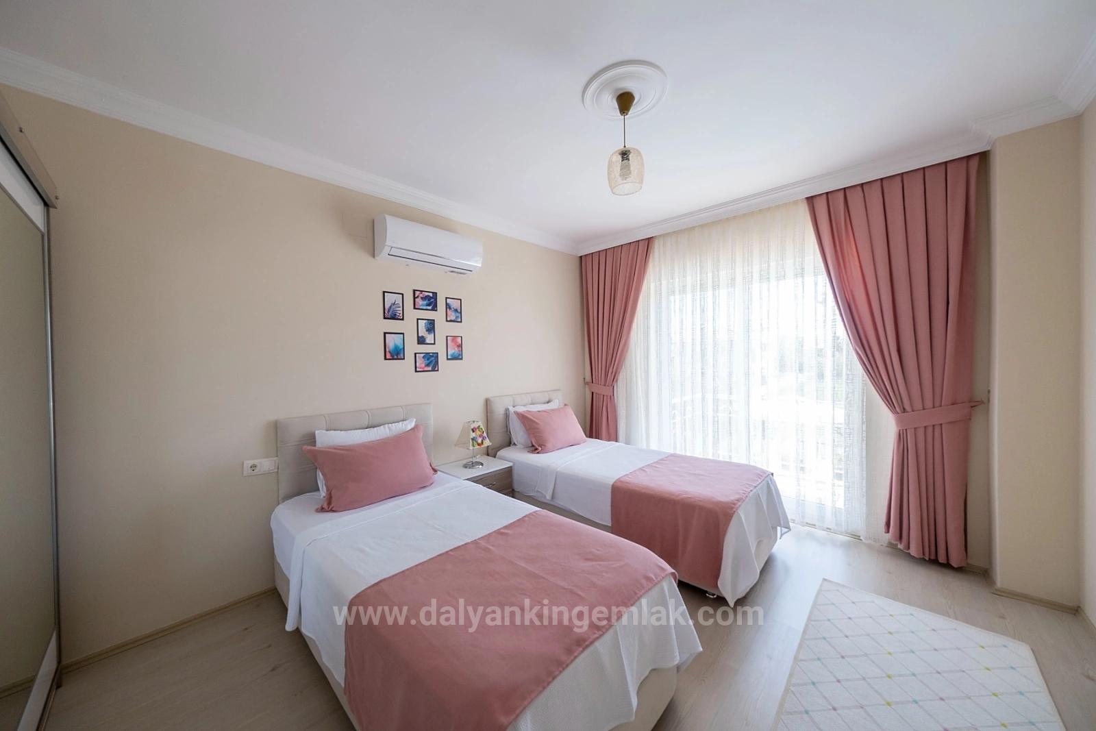 Even from the outside, the villa possesses a mysterious elegance, skillfully separated from the outside world by high natural fences, offering you a completely private living space. The spacious swimming pool reflects sunlight like crystals, while the adjacent children's pool provides a safe play area for younger guests. The scent of sun-warmed stones, the well-maintained lawn, and the colorful harmony of nature transform the garden into a true Mediterranean living scene. The stone barbecue and the enormous covered terrace are ready to turn summer evenings into tables filled with conversation and laughter. The private covered parking makes daily life easier. The moment you step into the villa, you are greeted by a serene ambiance created by spacious, peaceful, and tastefully chosen colors. The living room, with its spaciousness and comfort, is ready to host all the memories of a large family. The long, L-shaped modern kitchen, with its wide countertops and practical layout, transforms preparing large meals for your family into a delightful ritual. The colors on the floor, the play of light on the walls, and the harmony of the modern decor transform the interior into a warm home. The spacious double bedroom and modern guest bathroom on the ground floor offer both convenience and style. Up the wooden stairs, you are greeted by three elegant bedrooms, each with its own character. The master bedroom offers a corner of tranquility with its private dressing area, spacious en-suite bathroom, and balcony. The other two bedrooms are also spacious, bright, and have their own en-suite shower areas, providing an upstairs experience where comfort is never compromised. Villa İnci is offered fully furnished, including all appliances and air conditioning. This special home, perfect for both fragrant summer evenings and tranquil winter days, promises a future full of peace and happiness for its new owner, whether for a permanent home or a valuable investment. data-end="2506">Price: 25.000.000 TL