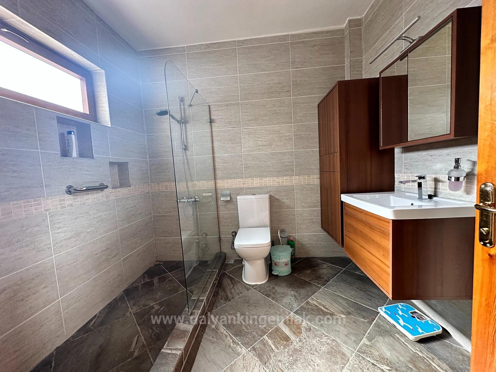 Поднявшись по лестнице наверх, вы найдете частные жилые зоны дома. Просторная главная спальня, расположенная в передней части дома, имеет приятный балкон с видом на участок и получает много дневного света. Кроме того, есть две большие спальни с двуспальными кроватями; Обе виллы имеют собственные балконы и предлагают просторную и спокойную атмосферу. Семейная ванная комната отличается стильным и функциональным дизайном, сочетающим функциональность с современной эстетикой, и отремонтирована с использованием каменных деталей. Вилла Melody предлагается к продаже полностью меблированной и готовой к заселению новыми владельцами, которым нужно только получить ключи. Благодаря центральному расположению, спокойной обстановке и сбалансированным жилым пространствам, эта вилла является чрезвычайно привлекательным вариантом для тех, кто ищет постоянное жилье, комфортабельный дом для отдыха или выгодную инвестицию в Дальяне.