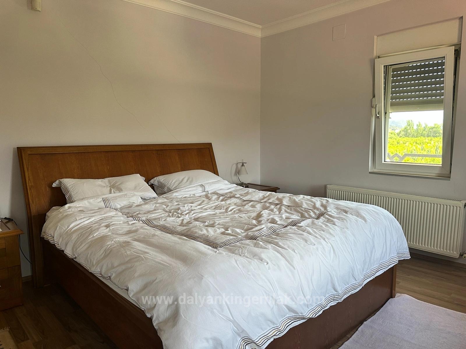 Расположенная у подножия гор Карадаг, в окружении щедрости природы, эта исключительная отдельно стоящая вилла предлагает абсолютную приватность на собственной обширной территории, находясь при этом всего в 15 минутах приятной прогулки от оживленного центра Дальяна. В этом доме в идеальной гармонии сочетаются покой, простор и элегантный загородный образ жизни. Расположенная на плодородной и пышной земле площадью около 6000 м², эта впечатляющая вилла с четырьмя спальнями окружена гранатовыми, апельсиновыми, сливовыми, грушевыми, яблоневыми, оливковыми и лимонными деревьями, создавая настоящий частный фруктовый сад. Здесь бесчисленные уголки для отдыха среди ухоженных газонов, ярких цветов и звуков природы. Огромный бассейн площадью 77 м² выделяется своим глубоким синим цветом, неглубокими ступенями и идеальными размерами для плавания. Огромная терраса, простирающаяся вдоль бассейна, с полностью крытой конструкцией и встроенным барбекю, готова принимать долгие обеды и приятные встречи в течение всего года. При въезде на виллу через двустворчатые главные ворота с частной парковки вас встречает просторный вестибюль с теплой и уютной атмосферой загородного дома. Двери, открывающиеся во всех направлениях, сразу же подчеркивают просторность дома. На первом этаже гостиная с большой зоной отдыха и открытым камином приглашает вас остановиться и насладиться моментом; а игровая комната, оборудованная полноразмерным бильярдным столом, дополняет развлечения. Гостевая ванная комната и вместительные встроенные шкафы делают повседневную жизнь чрезвычайно удобной. На первом этаже выделяется очень большой бассейн площадью 77 м², отличающийся глубоким синим цветом, неглубокими ступенями и чрезвычайно подходящими размерами для плавания. Кухня, сердце дома, сама по себе является жилым пространством. Ее просторная U-образная планировка, отдельно стоящий кухонный остров, большой обеденный стол на восемь человек и удобная зона отдыха для просмотра телевизора объединяют семью и гостей. Большая подсобная комната, доступная из кухни, выходит на боковую сторону дома, предлагая идеальный проход, особенно при входе из сада или с домашними животными. Все эти зоны плавно переходят в заднюю террасу и сад, окружающий бассейн. На верхнем этаже вас встречает впечатляющая главная спальня с гардеробной и ванной комнатой с душем и полноразмерной ванной. Просыпаться в этой комнате – одно из самых прекрасных удовольствий, ведь с просторного балкона, тянущегося вдоль заднего фасада, открывается вид на озеро Кёйчегиз, окружающие горы и поля. Вторая спальня также очень просторная, предлагая высочайший уровень комфорта со своей собственной ванной комнатой с душем, зоной отдыха и отдельным балконом. Третья спальня, благодаря своим размерам, может использоваться как двухместная или с двумя односпальными кроватями; с балконом с видом на озеро и ванной комнатой она предлагает практически полный комфорт. В коридоре также есть отдельный балкон и зона отдыха с видом на горы в переднем саду. На верхнем этаже, под скатами крыши, расположена четвертая спальня; она предлагает очаровательное и очень функциональное пространство с большим количеством места для хранения вещей. Все комнаты очень просторные и оборудованы кондиционерами и центральным отопление