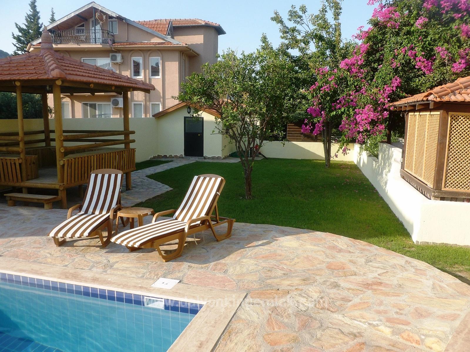 Sessiz ve huzurlu, nehre doğru kıvrılarak uzanan bir yol üzerinde yer alan villa; yaz aylarının keyfini doyasıya çıkarabileceğiniz bakımlı, yemyeşil bir bahçe ile çevrilidir.